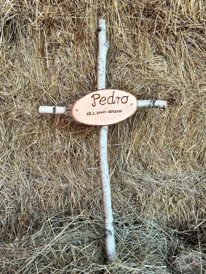 Anfang 2023 haben wir nach kurzer schwerer Krankheit unseren Esel Pedro verloren.